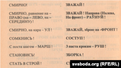 Замест расейскіх плеанастычных (г. зн. залішне паўтораных) „так точно“ і „никак нет“ — нашыя кароткія Так і Не. І яшчэ некалькі прыкладаў частых камандаў: