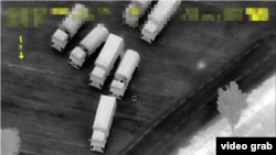 Спэцыяльная маніторынгавая місія АБСЭ ў Данбасе апублікавала відэа з бесьпілётніка, які зафіксаваў, як калёны грузавікоў ноччу ўяжджаюць на тэрыторыю ўсходняй Украіны з боку Расеі і выяжджаюць з Украіны ў месцы, дзе адсутнічаюць памежна-прапускныя пункты.