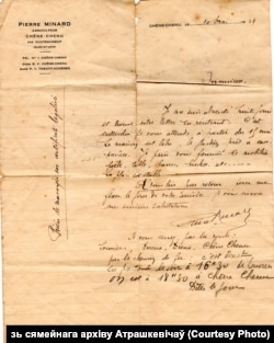 У архіве Атрашкевічаў захаваўся ліст ад уладальніка фэрмы П’ера Мінара — пра тое, што для іх падрыхтаваны дом з садам, а да прыезду прынясуць усю патрэбную мэблю і кухонныя прылады.