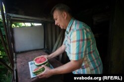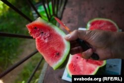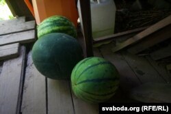 «Пытаўся ў гарадзенцаў, тыя казалі, што ня надта ўдавалася (вырошчваць кавуны. — РС). Нехта цяпер піша, што ў яго вырасьлі — памерам як яблыкі», — кажа дачнік.