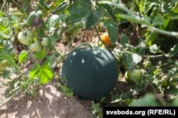 На ягоных дзевяці сотках, апрача «традыцыйных» бульбы, морквы, цыбулі, растуць фіялетавыя перцы, капуста брокалі, рукала ды базылік. Што насамрэч выклікае зьдзіўленьне, дык гэта бахча недзе паміж клубніцамі і памідорамі.