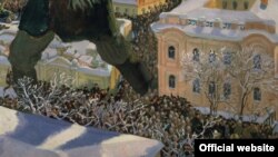 У горад перш-наперш упоўз бранявік, улез холадна і змрочна нібы нейкая пачварына, махаючы чырвоным сьцяжком.