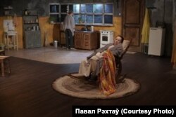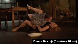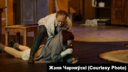 Фота Жэні Чарняўскага і Паўла Рэхтава. Перададзены рэжысэрам спэктакля Віталём Краўчанкам і Гомельскім гарадзкім моладзевым тэатрам.