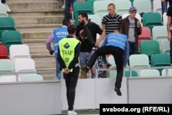 У Менску на стадыёне «Дынама» падчас стартавага матчу новага эўрапейскага каманднага турніру Ліга Нацый паміж зборнымі Беларусі і Сан-Марына адбыліся затрыманьні.