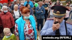 Паміж жыхарамі райцэнтру хадзіў міліцыянт Яўген Бяспалька і папярэджваў праз мэгафон, што «дадзенае мерапрыемства несанкцыянаванае», за што наступае адказнасьць па артыкуле 23.34 Кодэксу аб адміністрацыйных правапарушэньнях. «Дык арыштуй нас! Нам усё роўна, дзе паміраць — тут ці ў турме!», — закрычала на міліцыянта пэнсіянэрка. Іншыя ўдзельнікі флэшмобу пыталіся ў міліцыянта — ці ёсьць у яго дзеці і ўнукі?