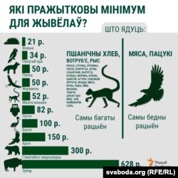 Пражытковы мінімум некаторых зьвяроў у горадзенскім заапарку (разьлічаны на год)