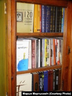 Нашая з мужам бібліятэка абсалютна звычайная для нашага веку і роду заняткаў, таму ёю асабліва нікога ня зьдзівіш: у сяброў і знаёмых паліцы такія ж або падобныя. Я адсялілася ад бацькоў толькі з тымі кнігамі, якія набывала сама з 16 гадоў, таму пераважна тут усё з канца 90-х і да «апошняга часу». Але была адна цікавая гісторыя. Вельмі даўно на буккросінгу (!) я адшукала зборнік прозы беларускага клясыка ХХ стагодзьдзя з аўтографам. Аднойчы я распавяла пра яе калекцыянэру Ціхану Чарнякевічу і той вельмі захацеў яе мець. Загваздка была ў аўтографе — ён аказаўся вельмі таямнічым. Мы з Ціханам нават прадпрынялі дэтэктыўнае расьсьледаваньне, але яно пакуль што завяло нас у тупік. Так ці іначай, я саступіла асобнік Ціхану, абмяняўшы на іншую кнігу таго ж пісьменьніка.