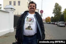 Глыбоцкі журналіст Зьміцер Лупач прыйшоў на пасяджэньне абласнога суду ў майцы зь вершам, які сьцісла перадае зьмест ягонай касацыйнай скаргі: