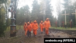 «Часткі сьпілаваных дрэваў і гольле ўдзельнікі суботніка вынесуць зь лесу рукамі, бо цяжкую тэхніку туды нельга пускаць», — кажа майстар. Пра зламаныя супрацоўнікамі лясгасу курапацкія крыжы ён нічога ня ведаў.
