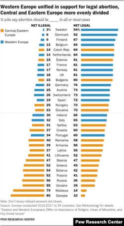 У стаўленьні да права на аборт назіраецца парадокс супярэчнасьці паміж ацэнкамі і практыкай. Постсавецкія краіны вельмі лібэральныя ў гэтым пытаньні, па колькасьці абортаў яны – сусьветныя чэмпіёны. У той жа час у некаторых краінах Заходняй і Цэнтральнай Эўропы дзейнічаюць даволі жорсткія абмежаваньні на аборт, яны ёсьць, прынамсі, у Польшчы, нядаўна толькі шляхам рэфэрэндуму яны былі скасаваныя ў Ірляндыі.