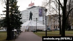 Бронзавы помнік вышынёю 5,5 мэтра стаіць у цэнтры Менску на аднайменнай плошчы. Скульптуру аўтарства Паліўчука і Глебава паставілі ў 1978 годзе. Яна мае статус гісторыка-культурнай каштоўнасьці. Рашэньне аб рэканструкцыі прымае Міністэрства культуры.