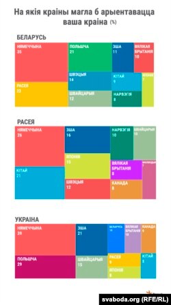 «У Беларусі ўсё, што зьвязана з публічным выказваньнем сваёй пазыцыі, набірае меншы працэнт у параўнаньні з адказамі расейскіх і ўкраінскіх рэспандэнтаў», — пішуць аўтары дасьледаваньня.