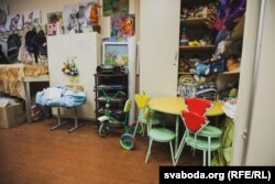 Цэнтар працуе ўжо 5 гадоў. Невялікае памяшканьне на першым паверсе адной зь менскіх школаў літаральна заваленае дзіцячай вопраткай і разнастайным начыньнем.