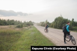 «Ён мясцовы жыхар, з Новалукомлю. Цудоўна ведае птушак, у яго выдатнае пачуцьцё гумару. Мы зрабілі маршрут, праехалі, пазначылі пункты і цяпер супрацоўнічаем. Даяжджаем на машыне да Новалукомля, а потым перасаджваемся на ровары і едзем 2 дні 70 кілямэтраў. Гэта нармальна нават для тых, хто ўпершыню выбраўся ў роварны паход».