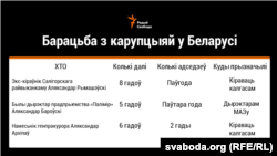 - атрыманьне хабару караецца пазбаўленьнем волі на 3–15 гадоў;