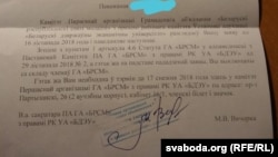 У лістападзе студэнтка ўлікова-эканамічнага факультэту БДЭУ напісала заяву аб выхадзе з БРСМ праз рэлігійныя перакананьні. Сёньня яна знайшла ў паштовай скрыні ліст з рашэньнем пярвічнай арганізацыі.
