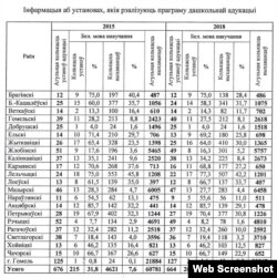 У лісьце прыводзяцца зьвесткі пра стан беларускамоўнай адукацыі, сабраныя абласным інстытутам разьвіцьця адукацыі.