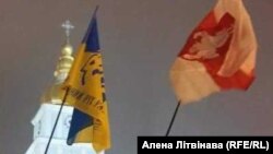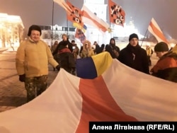 У часе маршу актывісты несьлі шасьцімэтровы сьцяг, у якім былі аб’яднаныя Бел-чырвона-белыя і жоўта-блакітныя палотнішчы.