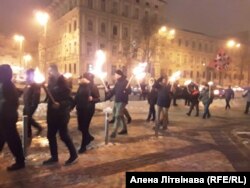 Пад сьцягамі сваіх арганізацый яны прайшлі шэсьцем ад Міхайлаўскай да Сафійскай плошчы, па вуліцы Хрышчацік да вуліцы Грушэўскага, дзе на месцы меркаванага забойства Міхася Жызьнеўскага ўсталяваны памятны знак.