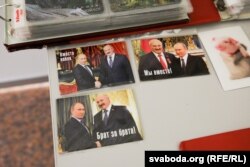 У самым кутку выставы, каля маленькага павільёна прадаюць сувэнірную прадукцыю — магніты з Пуціным і Лукашэнкам. На магнітах фота, як яны ціснуць адзін аднаму руку, і подпіс: «Брат за брата».