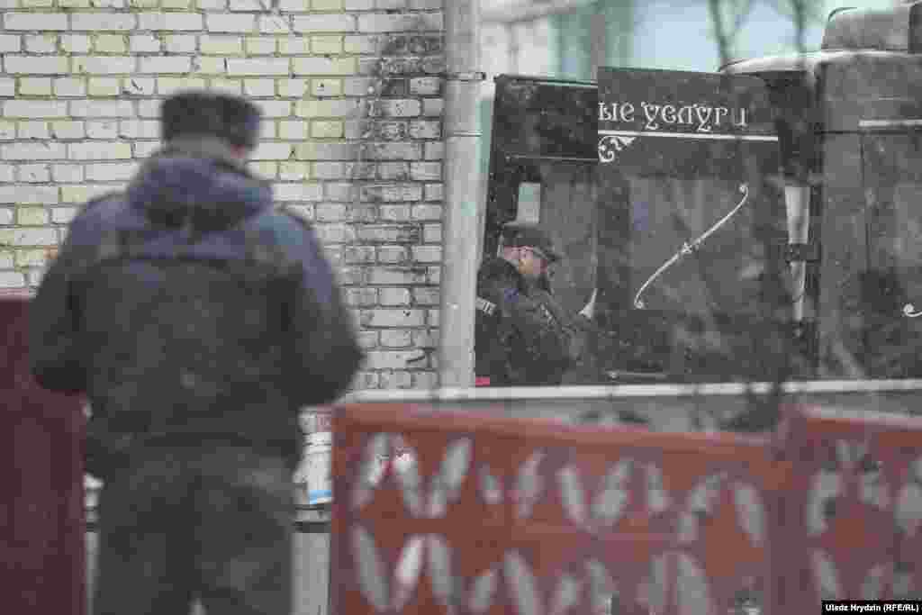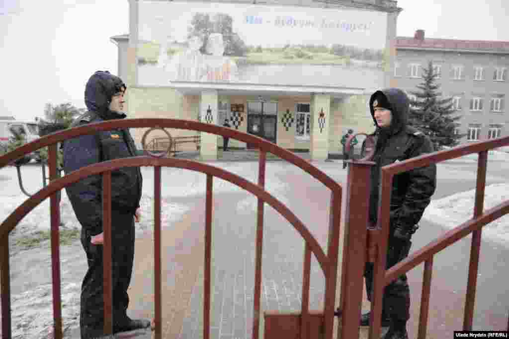 Міліцыянты каля школы № 2 у Стоўпцах пасьля двайнога забойства