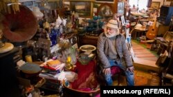 «Гэта грамафон 1914 году. Каштаваў 145 рублёў царскімі. Я яго скруціў. Тут і ўсе ўнукі круцілі. Трэба шасьцярню замяніць — і будзе граць, бо матор добры.