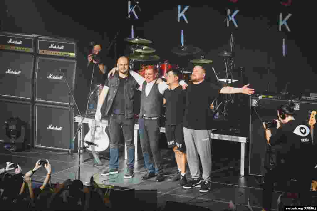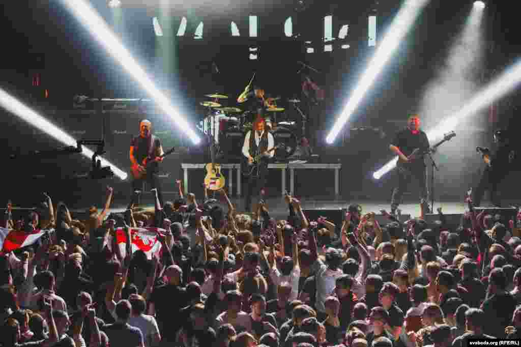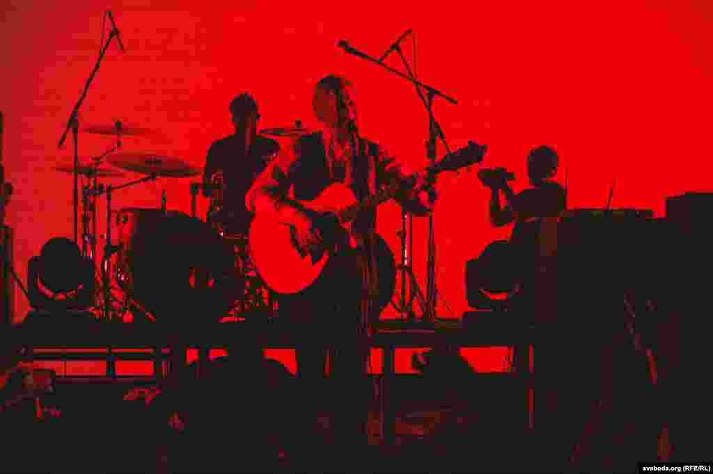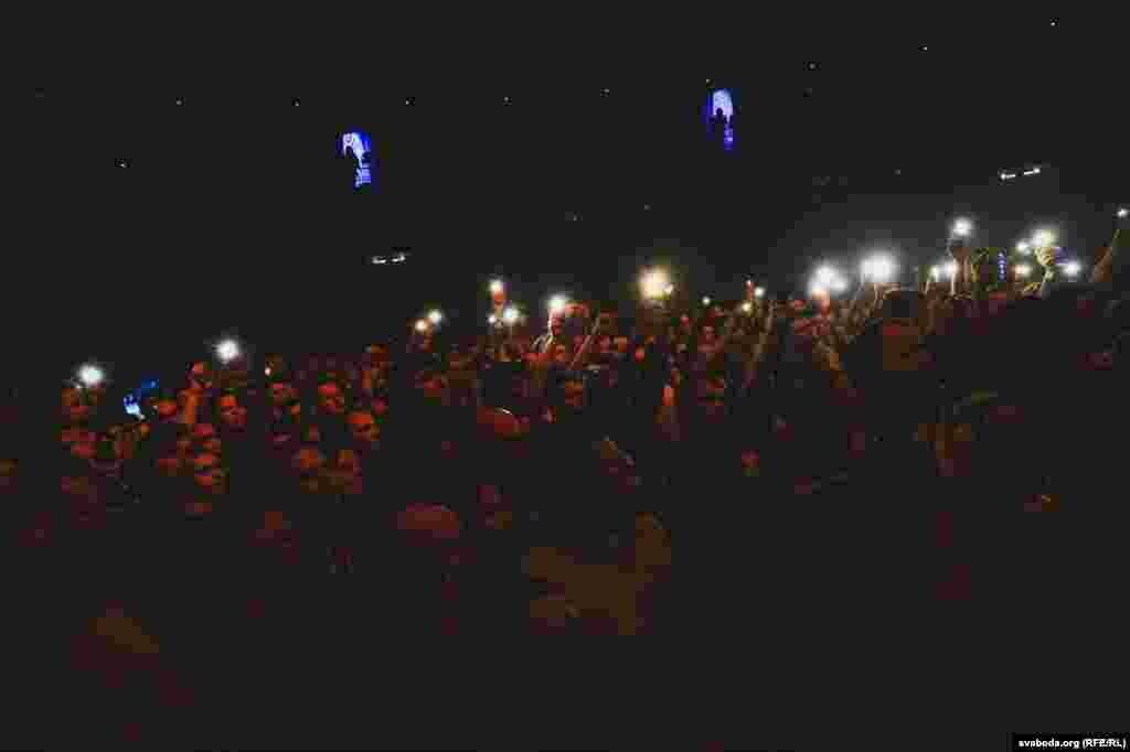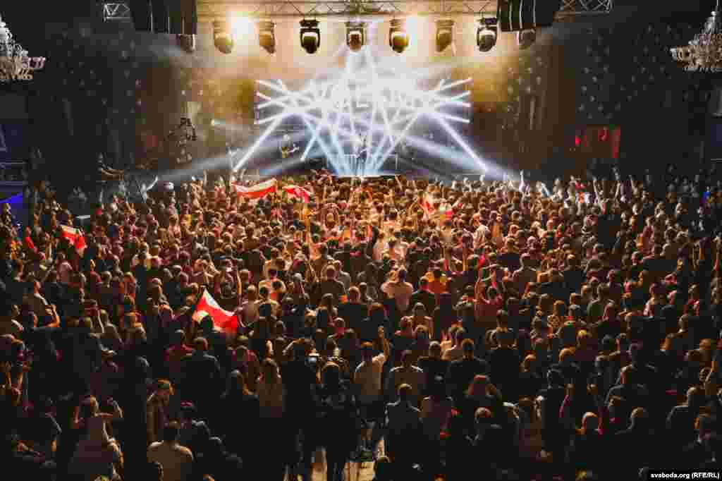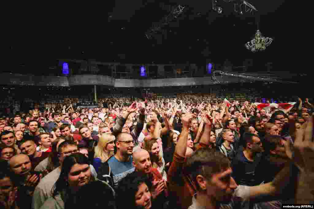 Пасьля некалькіх першых песень у залі зьявіліся бел-чырвона-белыя сьцягі