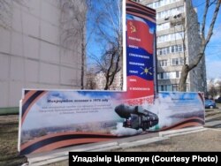На жыхара Мазыра склалі адміністрацыйны пратакол за надпіс «Незалежнасьцю не гандлюем!». Графіці было нанесенае двойчы, у студзені і лютым, на стэлу, усталяваную ў гонар ракетнай дывізіі, якая ў савецкія часы месьцілася ў Мазыры. Памятны знак аформлены ў колерах расейскага сьцягу, «аздоблены» георгіеўскай стужкай. У райцэнтры ўсталяваны два памятныя знакі ў гонар ракетчыкаў.