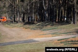 Агароджу ставяць супрацоўнікі ДСПМК з Заслаўя. Чалавек, які паводзіць сябе як іхны кіраўнік, кажа, што ведае пра Курапаты.