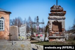 Сапраўды, справа ад капліцы здалёк відаць вялікае надмагільле з крыжам. Яно вылучаецца на фоне разбураных помнікаў зь нечытэльнымі надпісамі. Ляжаць кветкі, павязаная бела-чырвона-белая стужка.