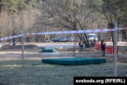 На баку лесу ад заслаўскай дарогі выкапаныя ямкі пад слупкі агароджы прыкладна на 300 мэтраў, але работы там не вядуцца. Па саміх Курапатах можна хадзіць, як і ўчора ўвечары. Ачэплена стужкай толькі паласа ўздоўж лесу ад рэстарана, дзе ставяць агароджу.