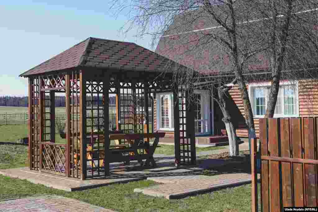 Двухпавярховы драўляны комплекс за шлягбаўмам. На ім яшчэ ня скончаныя будаўнічыя работы. Мясцовыя кажуць, гэта «яшчэ адна рэзыдэнцыя» славутага земляка.
