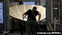 «Ён рэжа звычайнай вадой, якая ліецца вельмі хутка — хутчэй за гук», — паказвае Пагарэлаў на мутную вадкасьць, якая выглядае надзвычай бяскрыўдна.