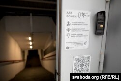 Пры ўваходзе — званок і выява QR-коду: гэта графічны штрых-код для смартфона. Госьці націскаюць на званок, а карыстальнікі цэнтру скануюць код мабільным тэлефонам — і такім чынам рэгіструюцца на сайце і ідэнтыфікуюць сябе.