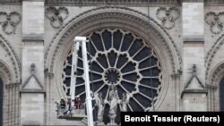 Моцны пажар у саборы Парыскай Божай Маці зьнішчыў шпіль будынка і ўсе драўляныя канструкцыі, якія падтрымлівалі дах. Аднак пажарныя здолелі спыніць агонь, а людзі пасьпелі вынесьці з будынка шмат рэліквіяў, якія цяпер захоўваюцца ў гарадзкой ратушы, паведаміў францускі міністар культуры Франк Рыстэр.