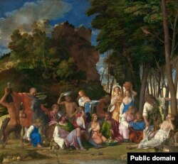 Клясыка беларускай кухоннай тэмы. І адначасова помнік смакавым цыбулінам архетыпічнага беларуса — капуста, кулеш, крупеня, жур, аўсяныя бліны… Боская смаката. Ох, людзі! Ілюстрацыя: Джавані Бэліні «Банкет багоў» (1514).