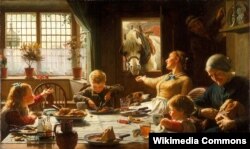 Гэта адзін з нешматлікіх (а можа, і адзіны) прыклад, калі чытаньне беларускага тэксту выклікае пазытыўныя кулінарныя эмоцыі. Цякуць сьлінкі і хочацца паспрабаваць гарачых аладак-блінчыкаў-пампушак проста з патэльні. Так, аднак, было за цара, на жаль, і гэта ўжо ня вернецца, як кажуць чэхі (to už se nevrátí). Потым прыйшлі бальшавікі і адбілі ў беларуса ахвоту пазытыўна паесьці. Ілюстрацыя: Фрэдэрык Джордж Котман «Адзін зь сям’і» (1880).
