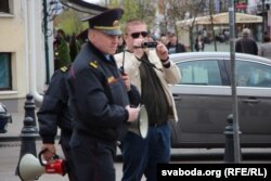 Каля кінатэатру «Беларусь» міліцыянты яшчэ раз папярэдзілі людзей пра тое, што акцыя несанкцыянаваная, а яе ўдзельнікі будуць ідэнтыфікаваныя ды прыцягнутыя да адказнасьці.
