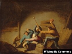 Да чаго толькі чалавек не дадэгенэруецца ў Беларусі? Нават да таго, што з самагону пяройдзе на піва! Ня верыцца. Але што ж, licentia poetica, як той казаў. Ілюстрацыя: Адрыян ван Остадэ «Мужыцкая бойка» (1637).