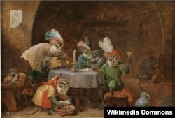 Гісторыя-перасьцярога. Некалі я пераклаў яе на польскую мову, каб перасьцерагчы і полек. Ня піце, дзеўкі, з філёзафамі ў дзень нараджэньня! Ілюстрацыя: Давід Тэнірс Малодшы «Малпы кураць і выпіваюць» (1660).