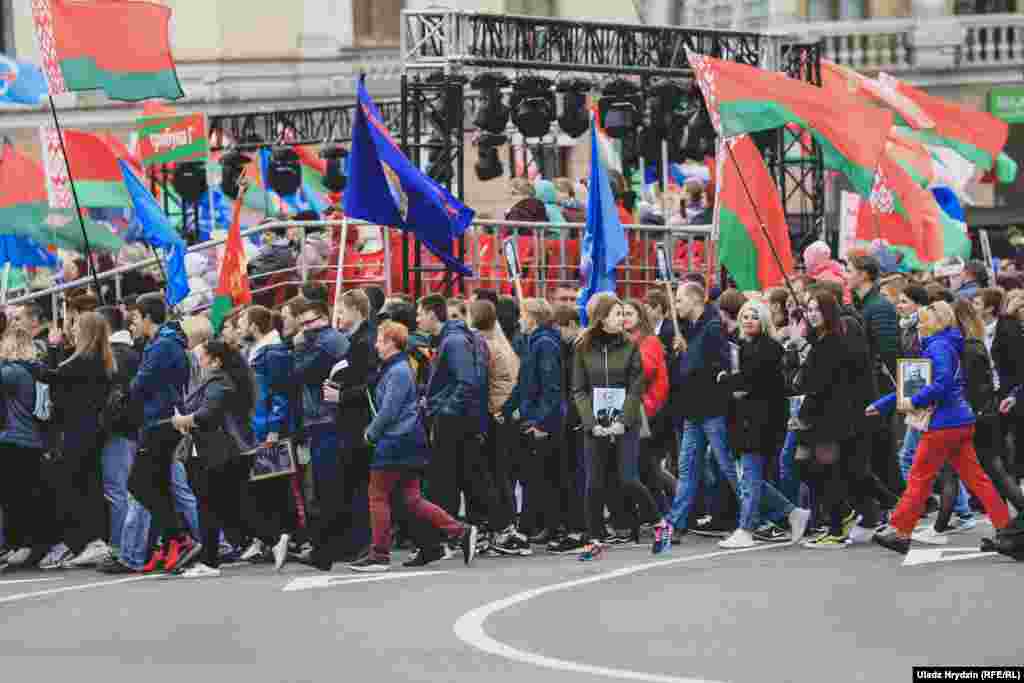 На афіцыйных урачыстасьцях у Менску практычна не выкарыстоўвалася савецкая сымболіка. Але на парадзе ў Магілёве разгарнулі гіганцкі савецкі сьцяг
