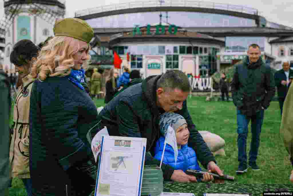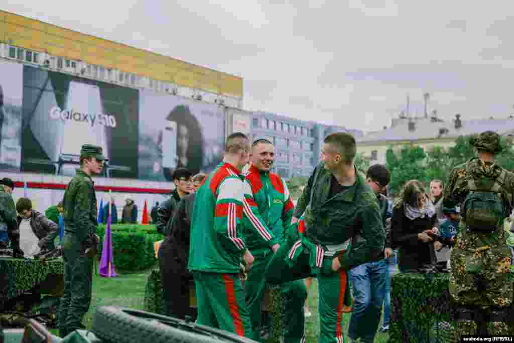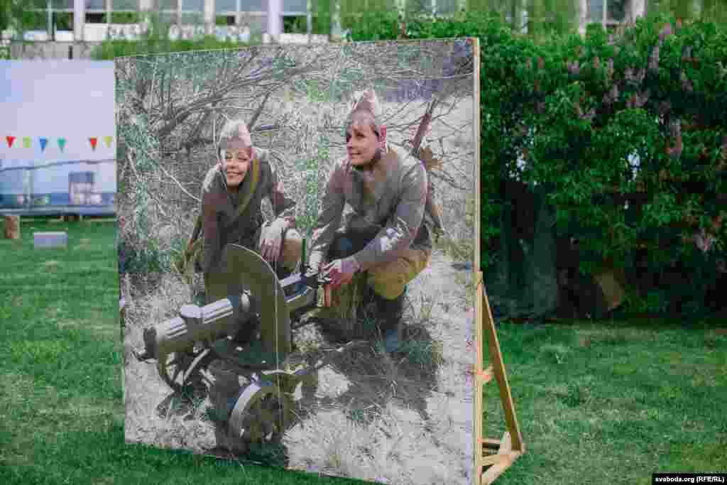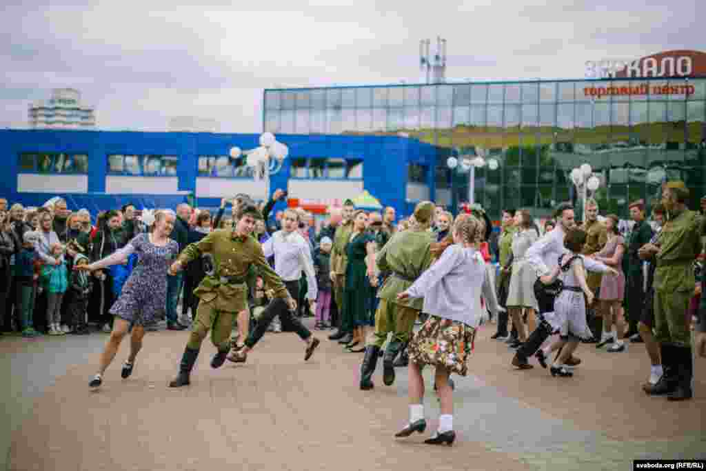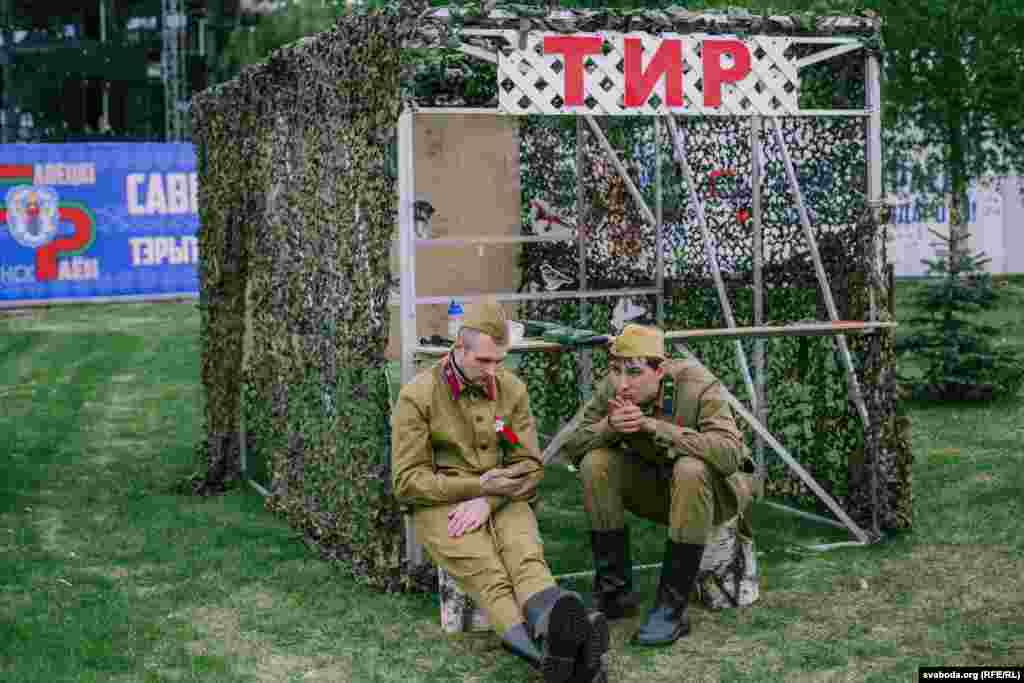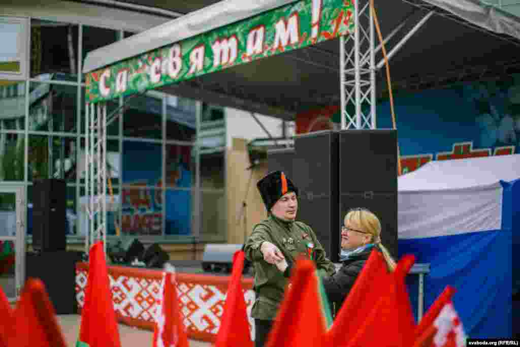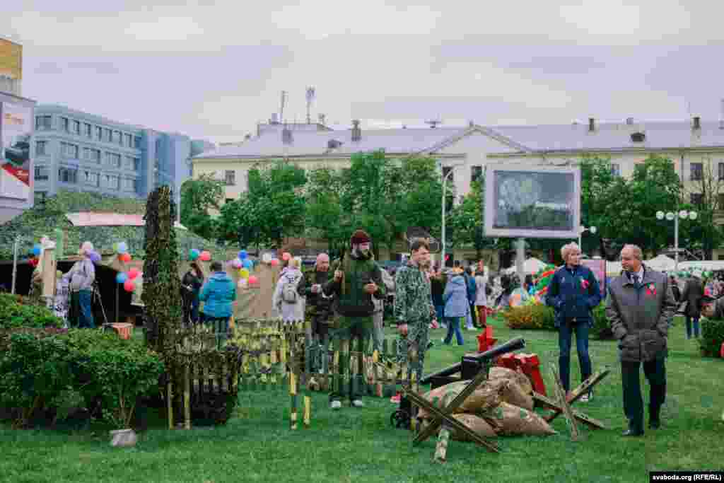 Да сьвяткаваньня Дня Перамогі ля Камароўскага рынка ўсталявалі сцэну і гульнявую зону для дзяцей.