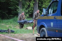 У 5.15 з ачэпленага лесу вынесьлі накрытае цела міліцыянта. Сьледчыя працягваюць працаваць.