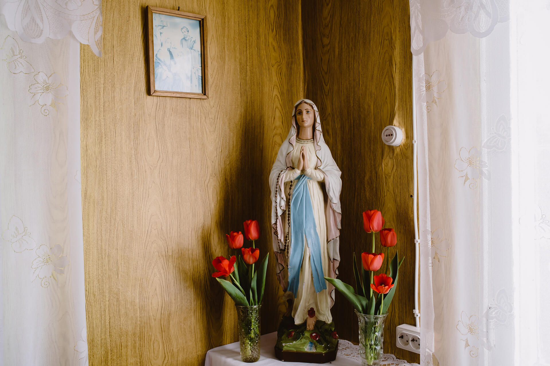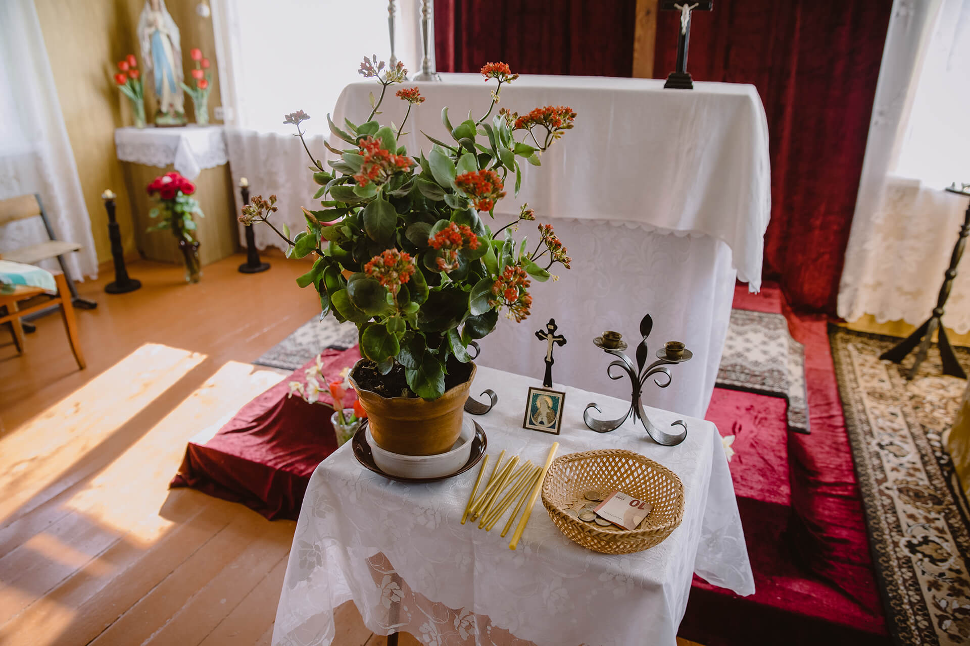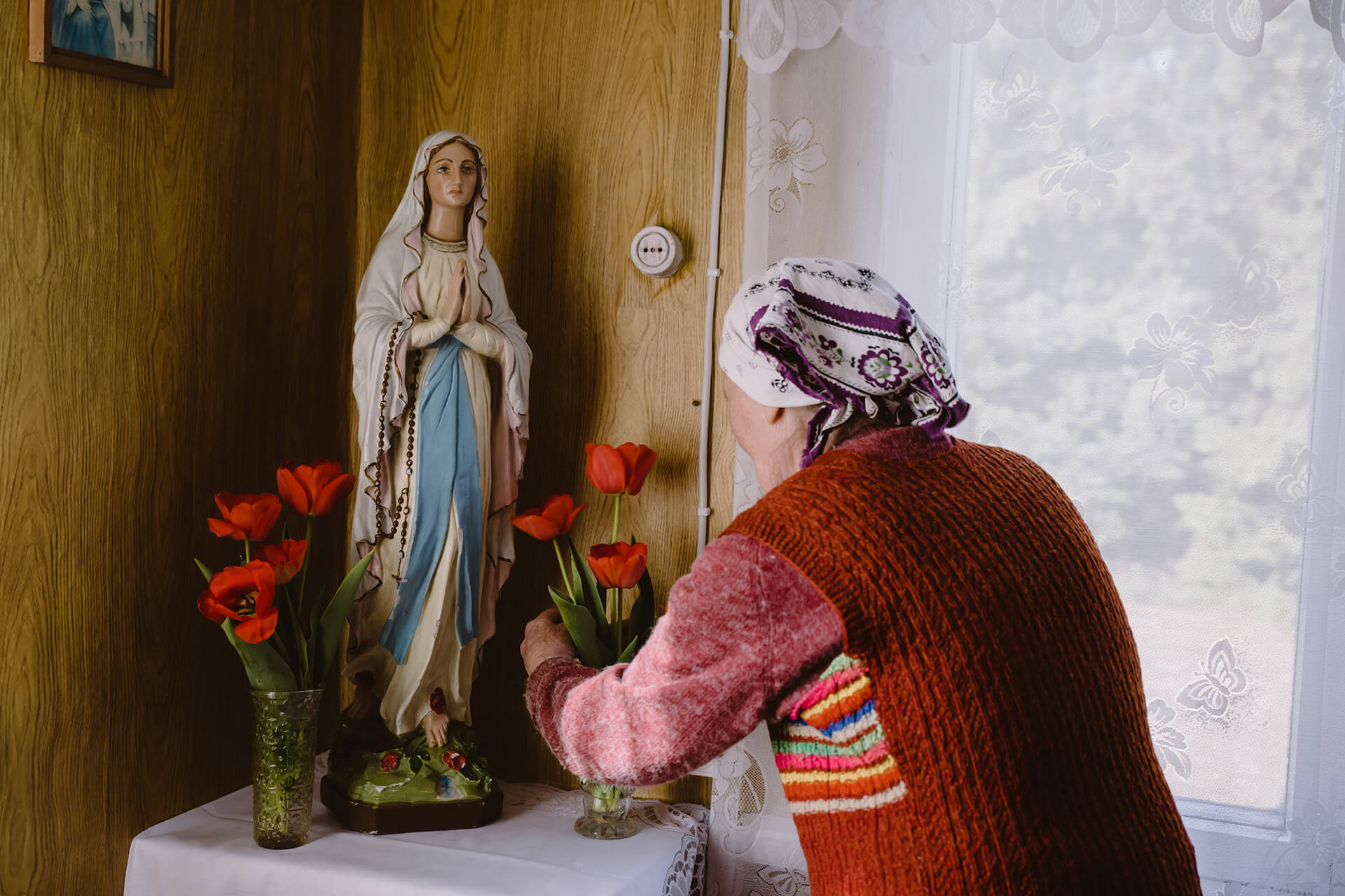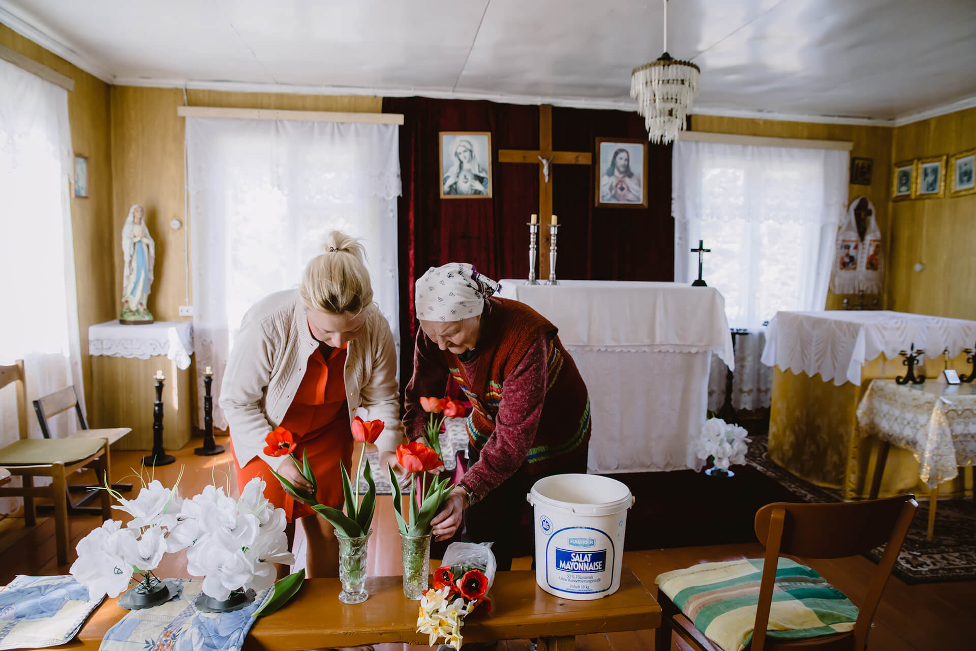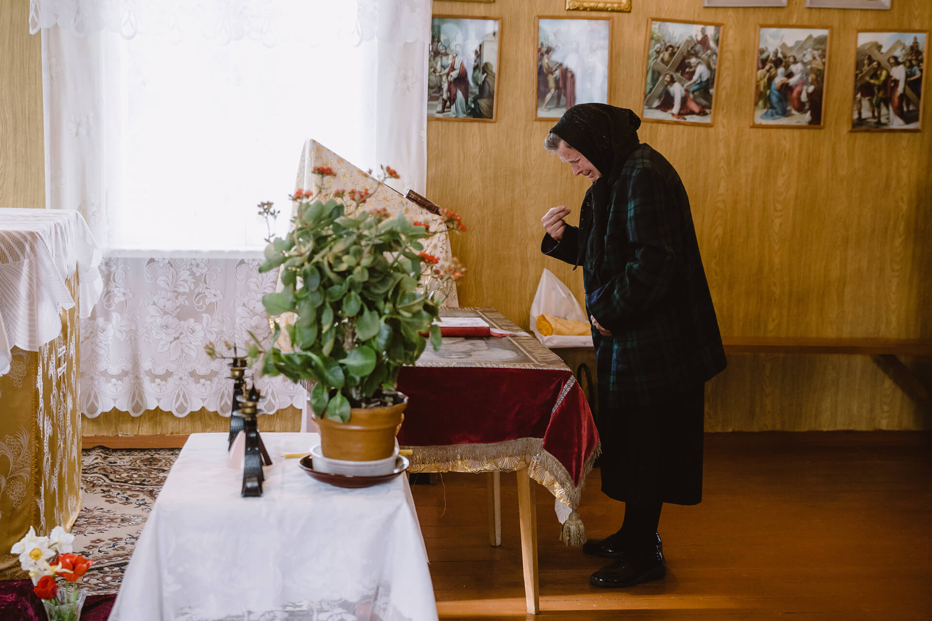 «Разам рабілі, і праваслаўныя, і палякі. Праваслаўныя рабілі сваё, а мы ўжо сваю старану рабілі», — кажа 78-гадовая Крысьціна Утаўка. 28 красавіка яна прыйшла прыбіраць у капліцы перад прыездам ксяндза.