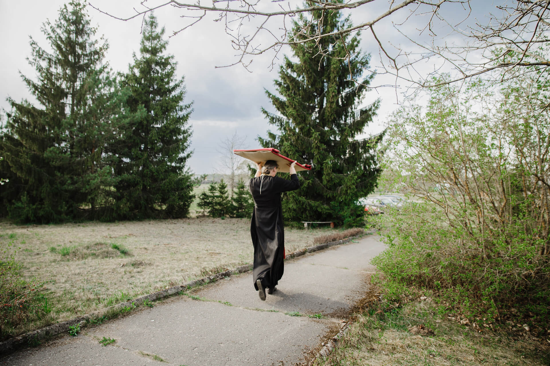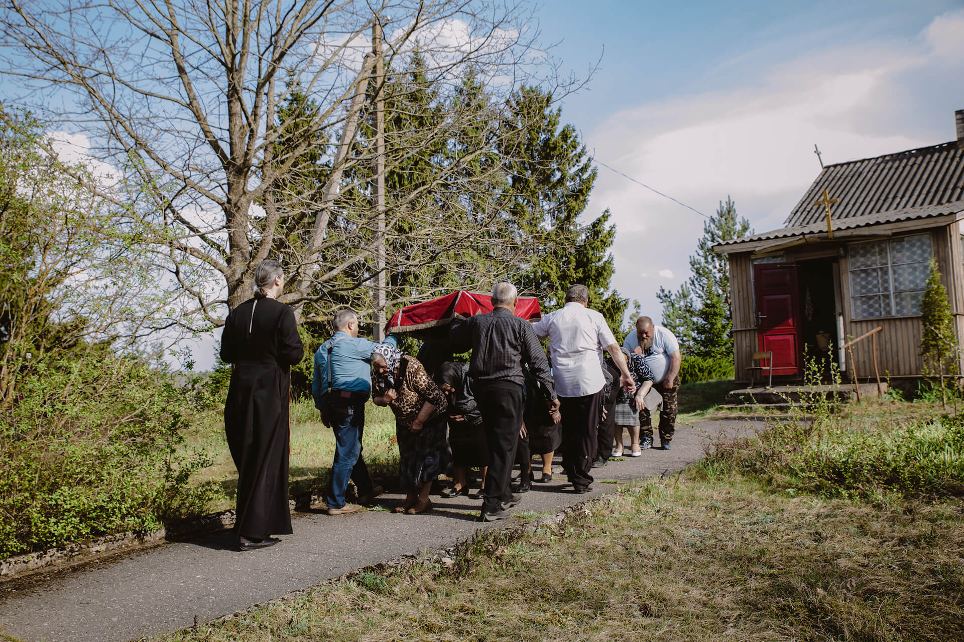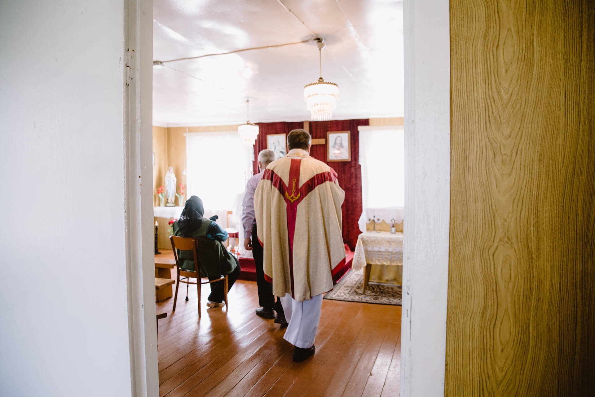 28 красавіка ў 16.00 прыбывае ксёндз Альмандас. У капліцы каля дзесяці чалавек. Парафіяне кажуць, што звычайна прыходзіць болей. Імша, камунія, збор ахвяраваньняў, і ўжо праз гадзіну каталікі сыходзяць, не замыкаючы капліцы.