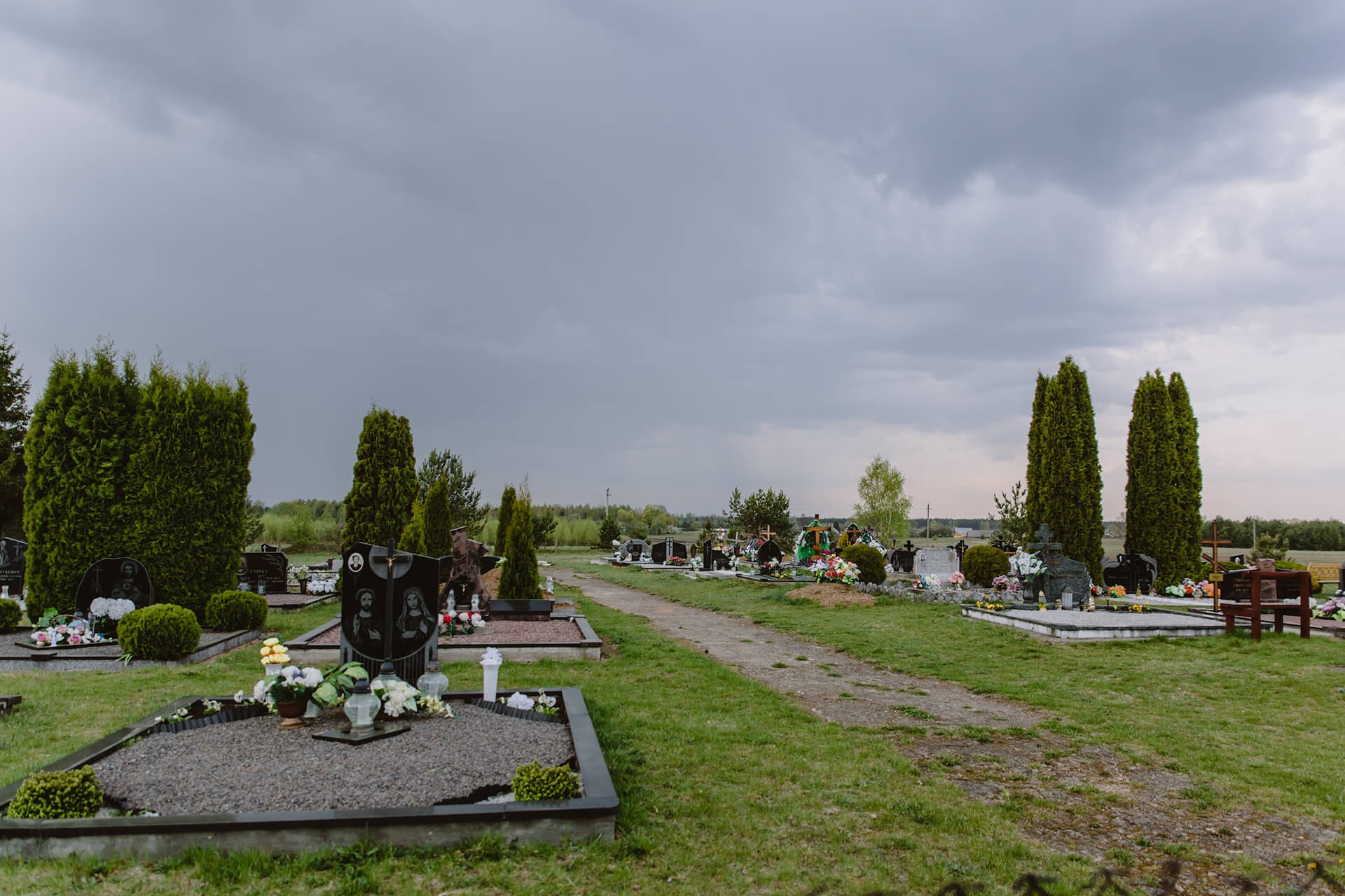 Пазьней на ўскрайку вёскі сельсавет выдзеліў зямлю пад могілкі. Яны зусім малыя і таксама падзеленыя на дзьве часткі. Зьлева — каталіцкія, справа — праваслаўныя.