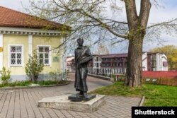 Бронзавую скульптуру ў поўны рост паставілі перад музычным каледжам. Скульптар — Валяр’ян Янушкевіч.