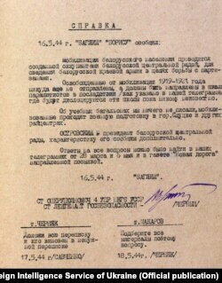 У траўні 1944 году народны камісар дзяржбясьпекі УССР Саўчанка накіраваў у Маскву паведамленьне аб дзейнасьці Беларускай цэнтральнай рады.