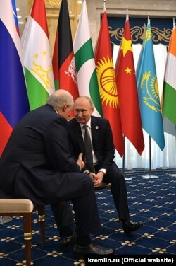 Кіраўнікі Расеі і Беларусі Ўладзімір Пуцін і Аляксандар Лукашэнка падчас саміту Шанхайскай арганізацыі супрацоўніцтва ў Бішкеку правялі кароткую гутарку.