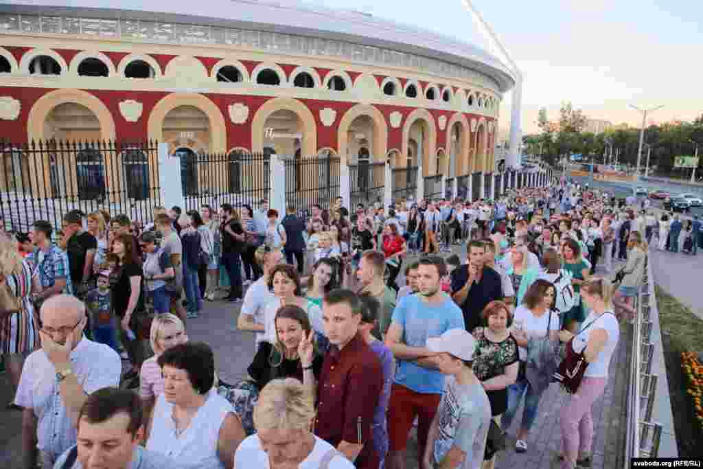 На рэпэтыцыі адкрыцьця Эўрапейскіх гульняў у Менску утварыліся вялікія чэргі з жадаючых трапіць на стадыён «Дынама». Праз галоўны ўваход амаль нікога не пускалі. Ён быў аддадзены VIP-пэрсонам.